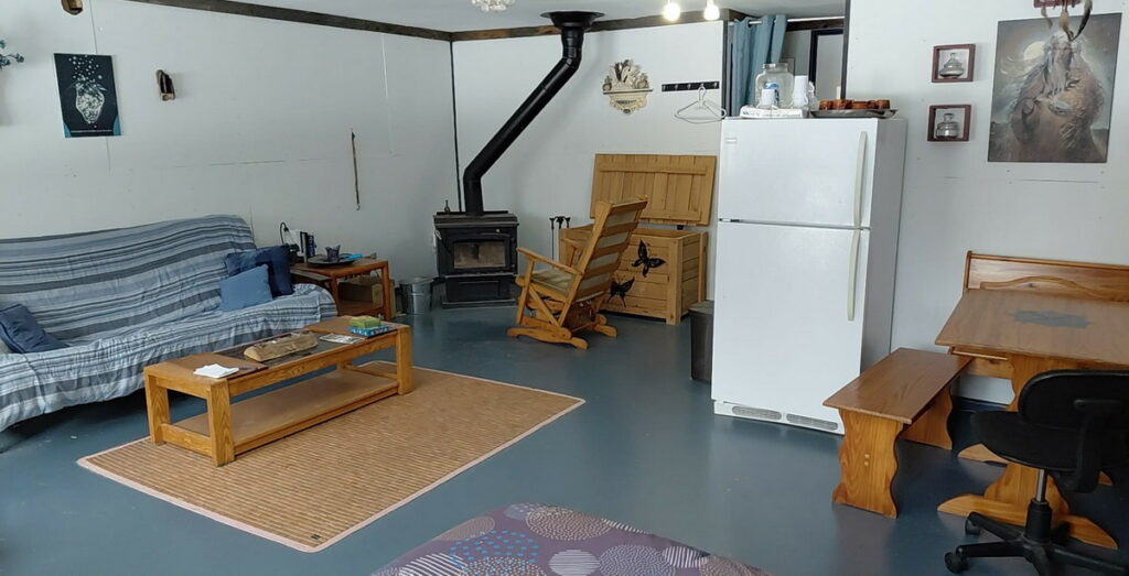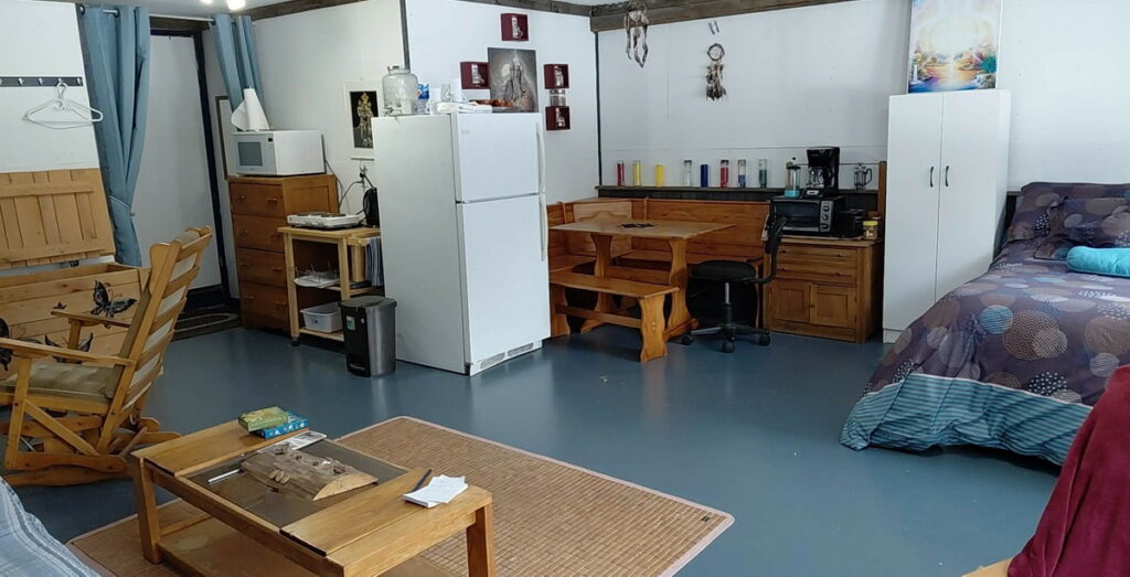 – un grand lit Queen (literie fournie) et un futon double qui fait office de sofa,